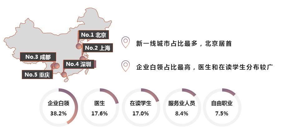 其次是醫美行業用戶主要的地域屬性和職業分布。