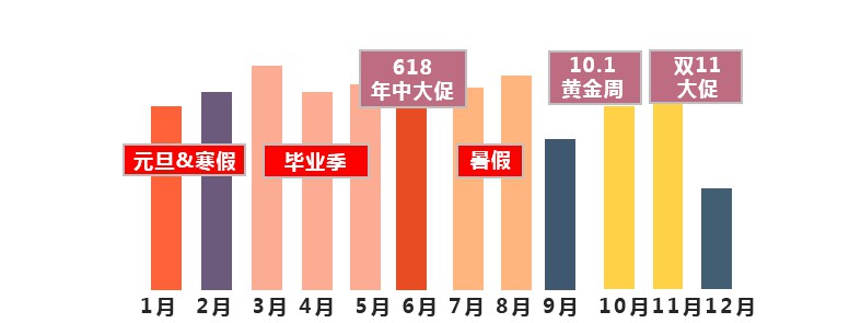 我們來看整年營銷熱點,元旦小長假適合推廣恢復時間快的非手術類醫美項目;618和雙11節點則適合進行促銷類活動;而寒假、暑假和畢業季則因為假期較長的原因,可以推廣手術類醫美項目。
